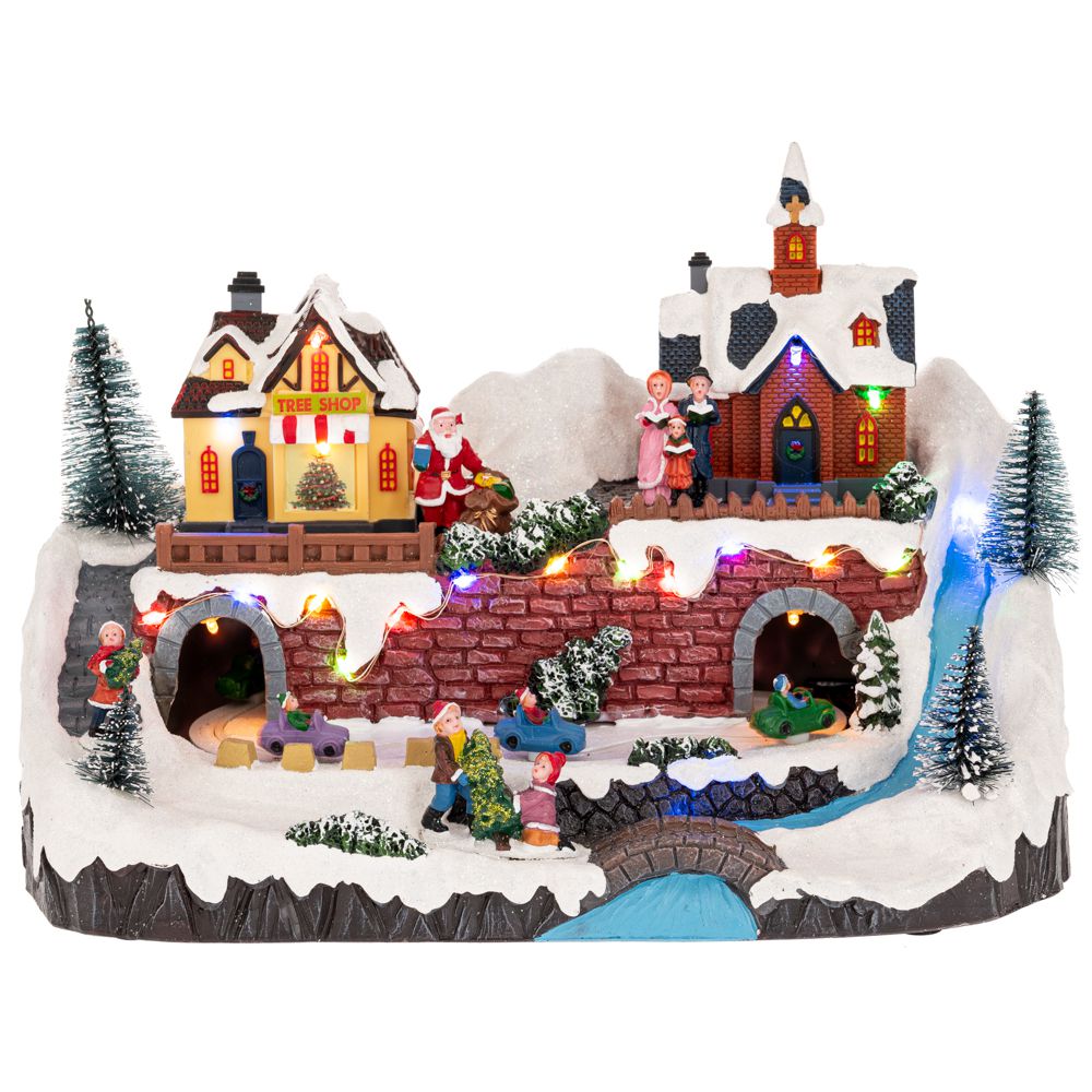 Χριστουγεννιάτικο εντυπωσιακό χωριό με σπιτάκια, χαρούμενες φιγούρες ανθρώπων καθώς και τρένο που γυρνάει γύρω γύρω, μέσα σε τούνελ. Έχει φως σε αρκετά σημεία και μουσική με 8 τραγούδια. Η μουσική έχει κουμπί On/Off.