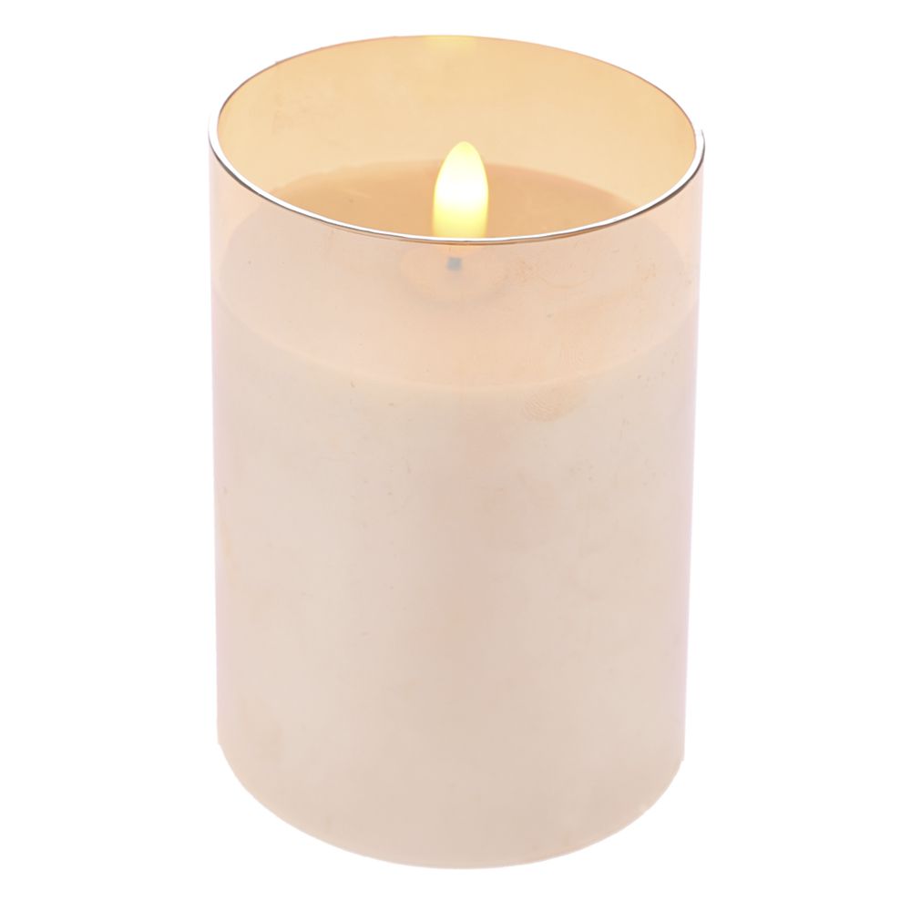 Κερί μπαταρίας με εφέ κινούμενης φλόγας σε κρεμ χρώμα μέσα σε γυάλινο μελί κηροπήγιο. Οι μπαταρίες μπαίνουν στην κάτω στην βάση και δεν περιέχονται ΑΑΑ.