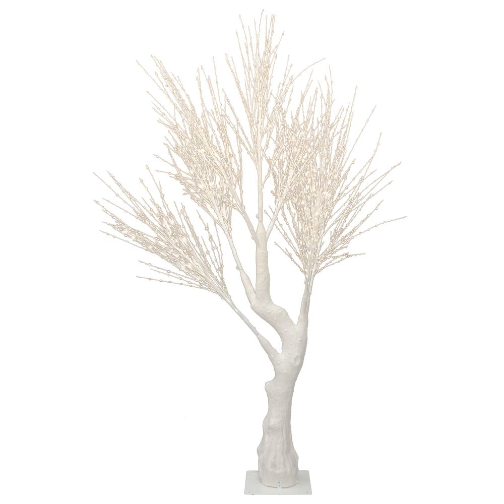 Διακοσμητικό λευκό δέντρο ύψους 220εκ. Διαθέτει 3072 led λαμπάκια σε θερμό χρώμα και είναι τοποθετημένο σε λευκή μεταλλική βάση.