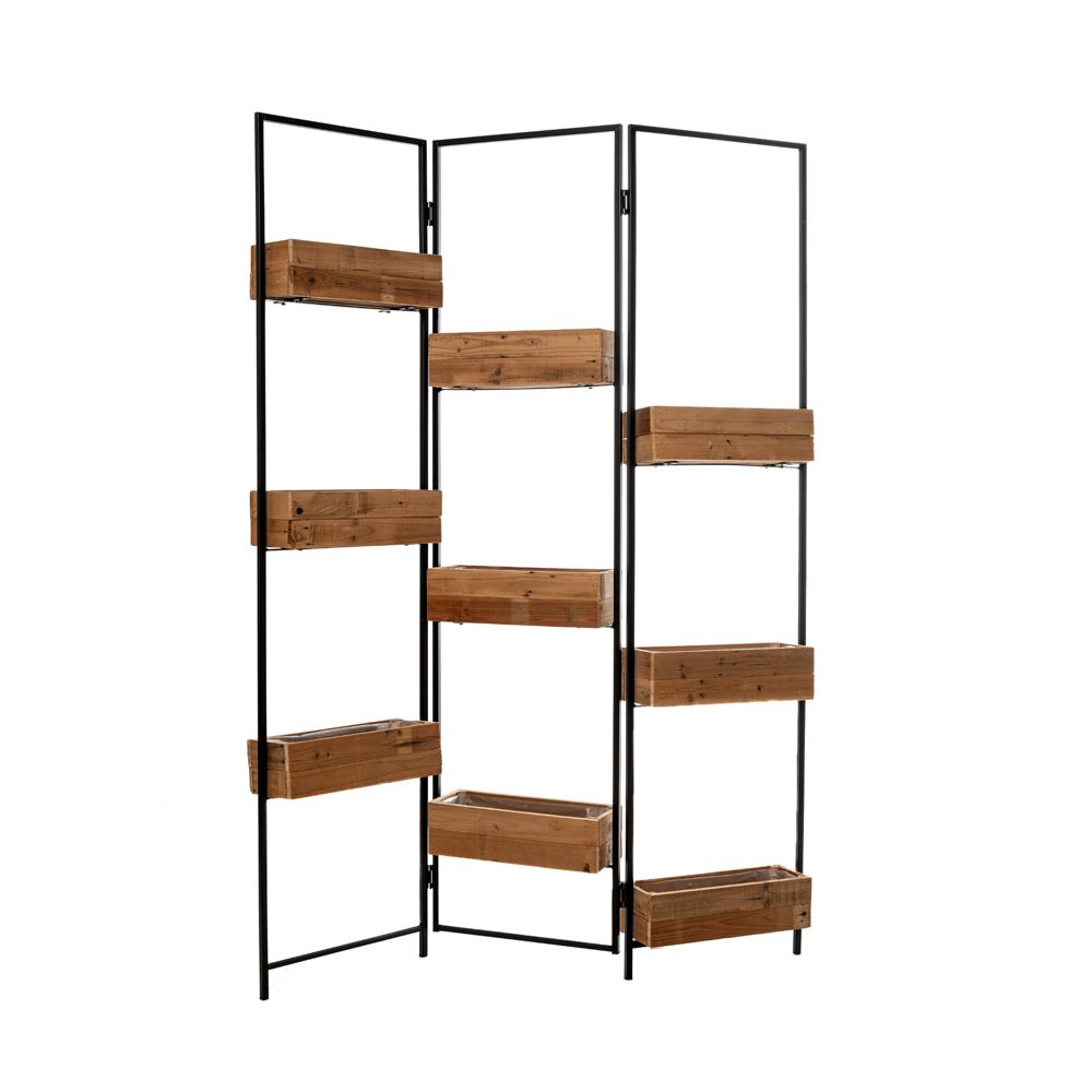 Μεταλλικό μαύρο παραβάν Χ3 με 9 ξύλινα κασπώ για φύτεμα.