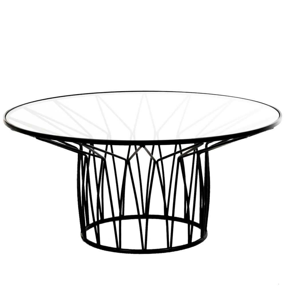 Τραπέζι μεταλλικό μαύρο στρόγγυλο με γυάλινη επιφάνεια 85χ85 40εκ.υψος.