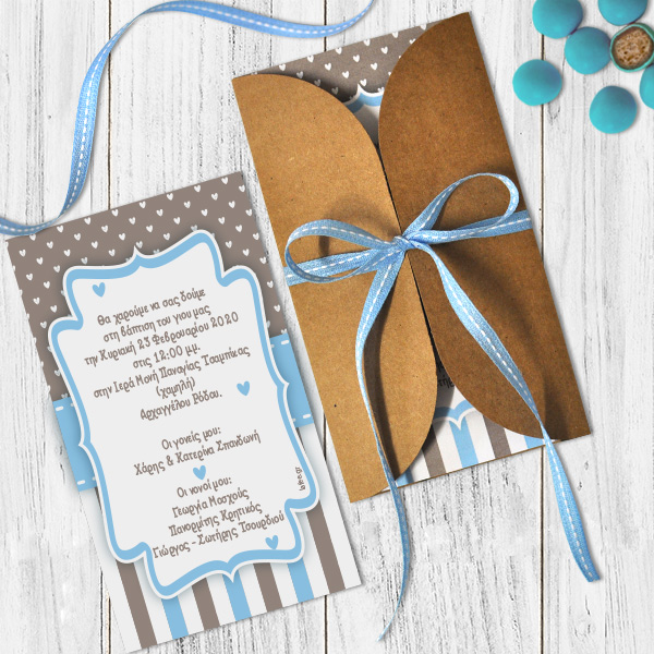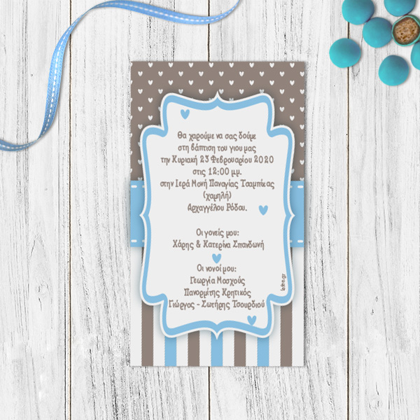 Προσκλητήριο Βάπτισης Ριγέ Αγόρι Με Εκτύπωση