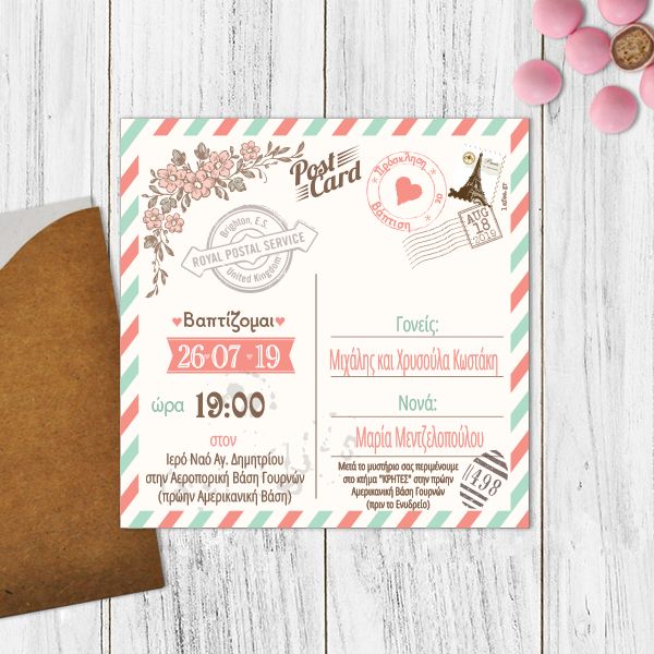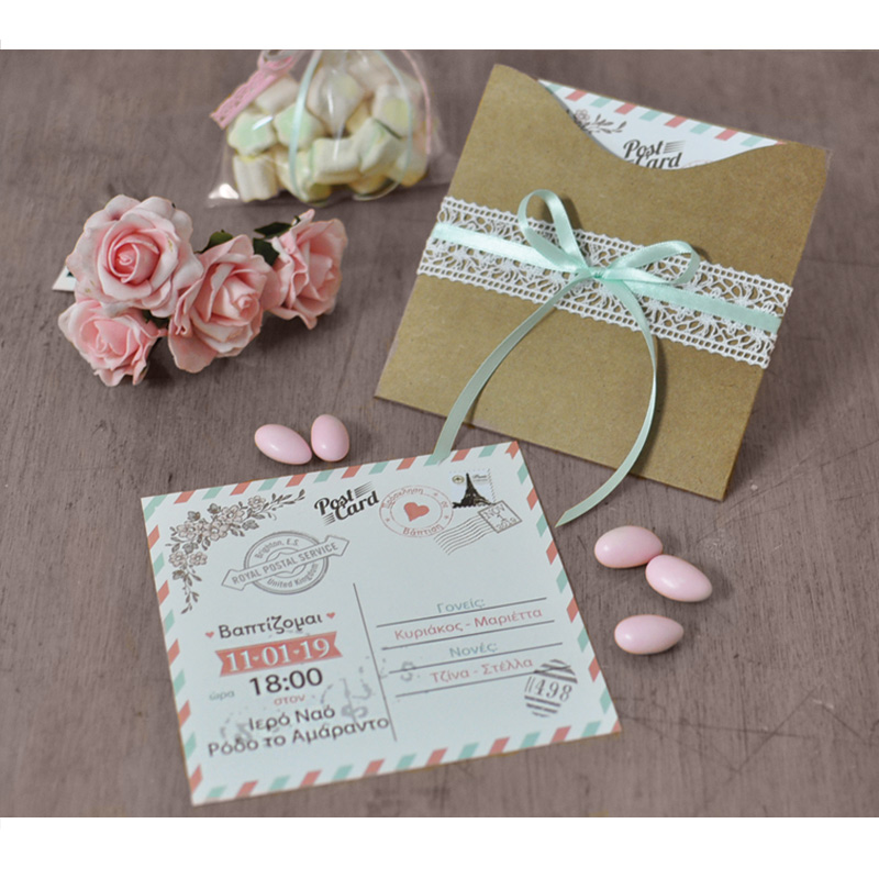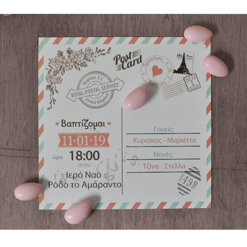 Προσκλητήριο Βάπτισης κάρτα σε ματ χαρτί οπαλίνας 300γρ