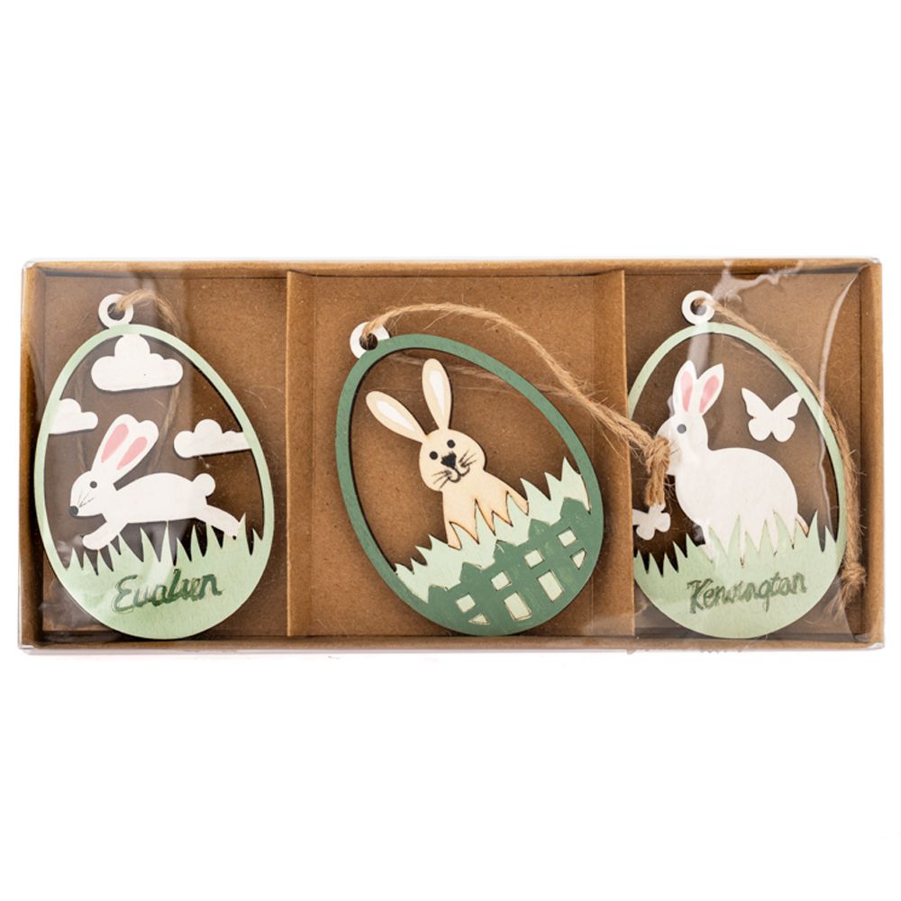 Κρεμαστά αυγά με λαγό ξύλινα σετ3 τεμαχίων 5χ7εκ.